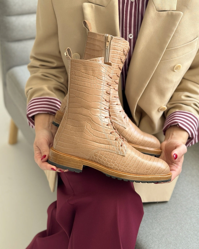 • Obermaterial: Italienisches Kalbsleder mit Kroko-Print