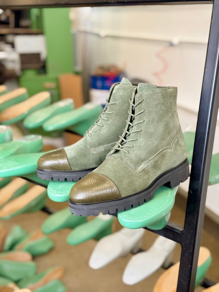 Alle unsere Schuhe werden auf Bestellung produziert. Nach deiner Bestellung wird der Schuh speziell für Dich handgefertigt und innerhalb von ca. 20-25 Werktagen an Deine Adresse geliefert. Mit so einer Aufstellung reduzieren wir Abfall and schonen die Umwelt.
