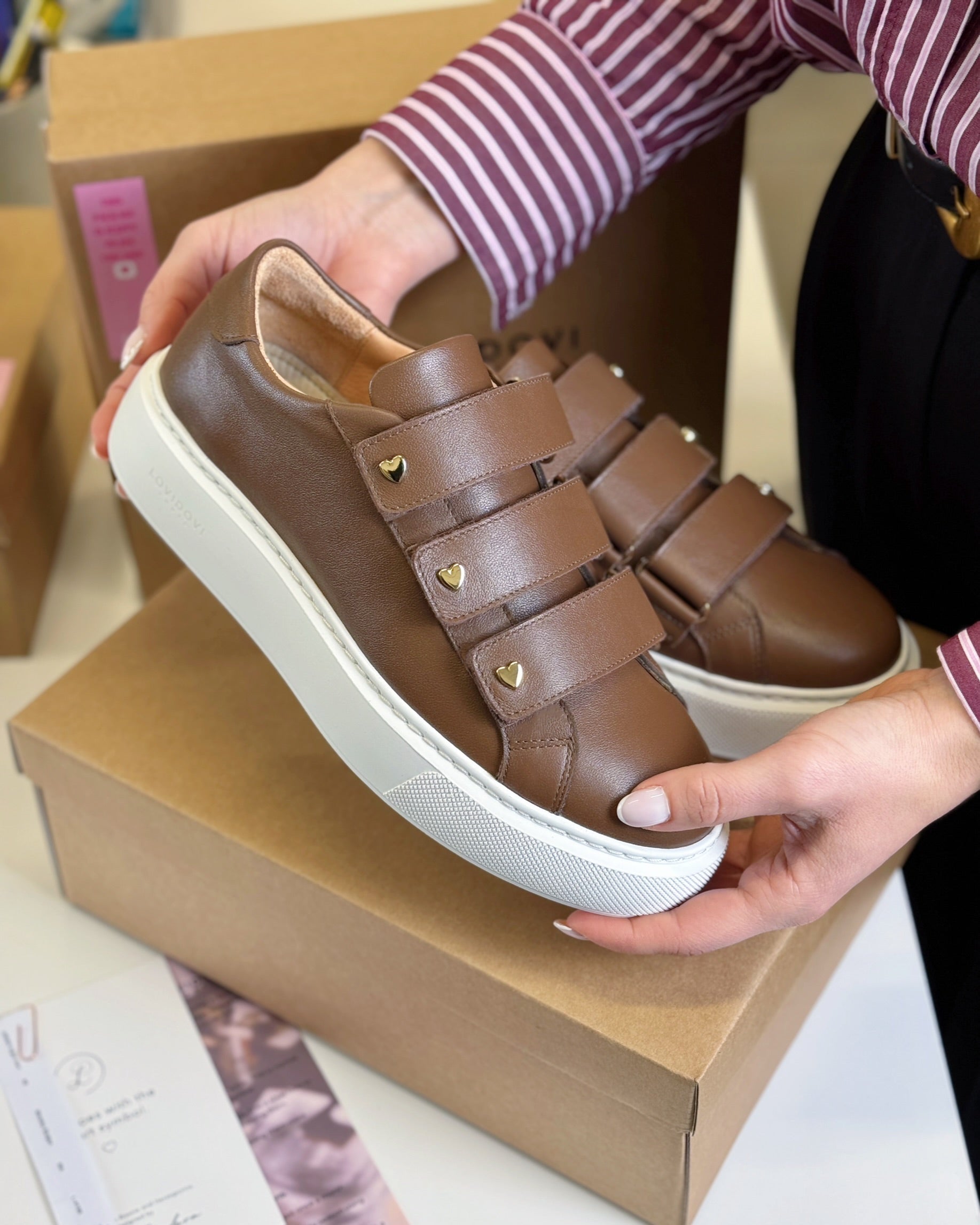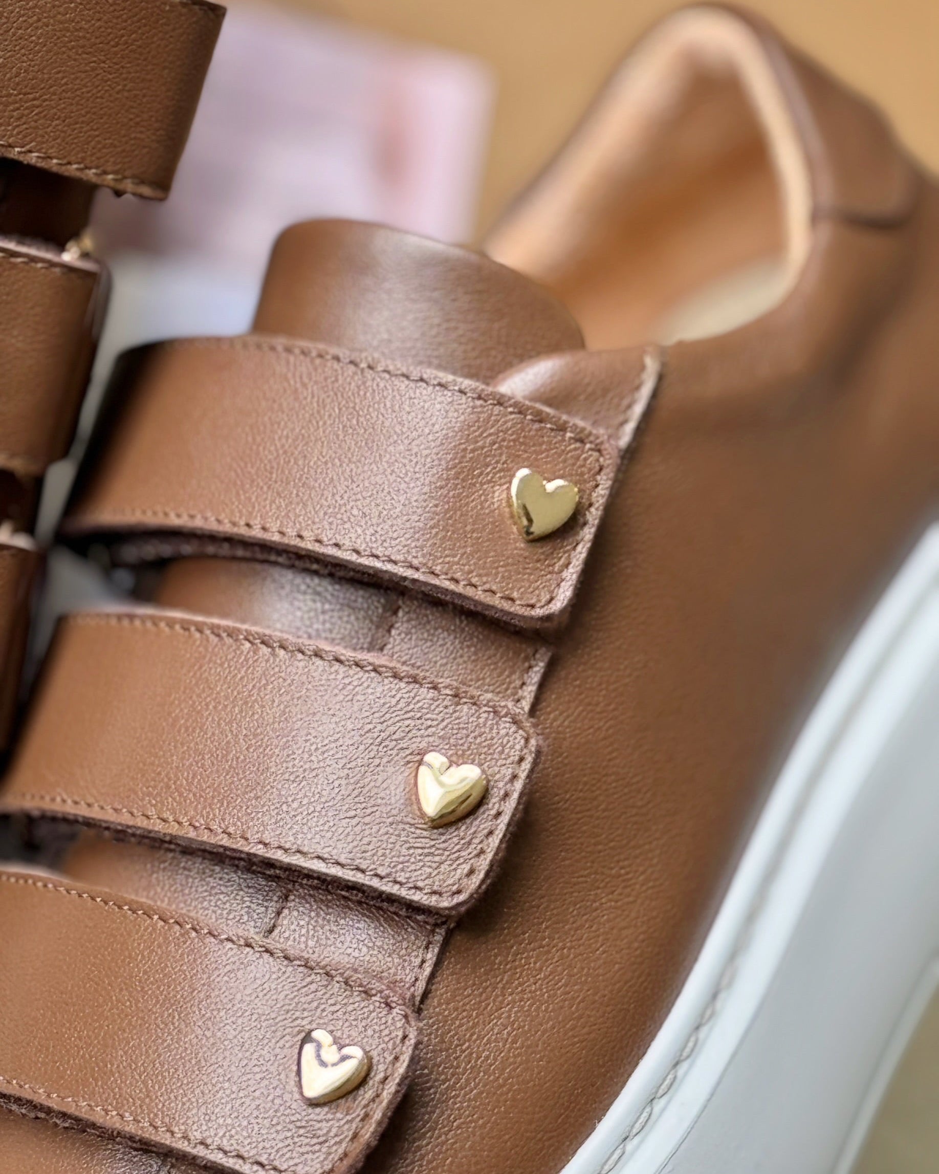 Jedes unserer Modelle verfügt über ein Herzdetail, das die Liebe und Mühe symbolisiert, die in die handgefertigte Herstellung jedes Paares investiert werden. Alle metallischen Herzdetails sind mit 24-karätigem Gold überzogen, was ihnen ein luxuriöses und elegantes Aussehen verleiht.
